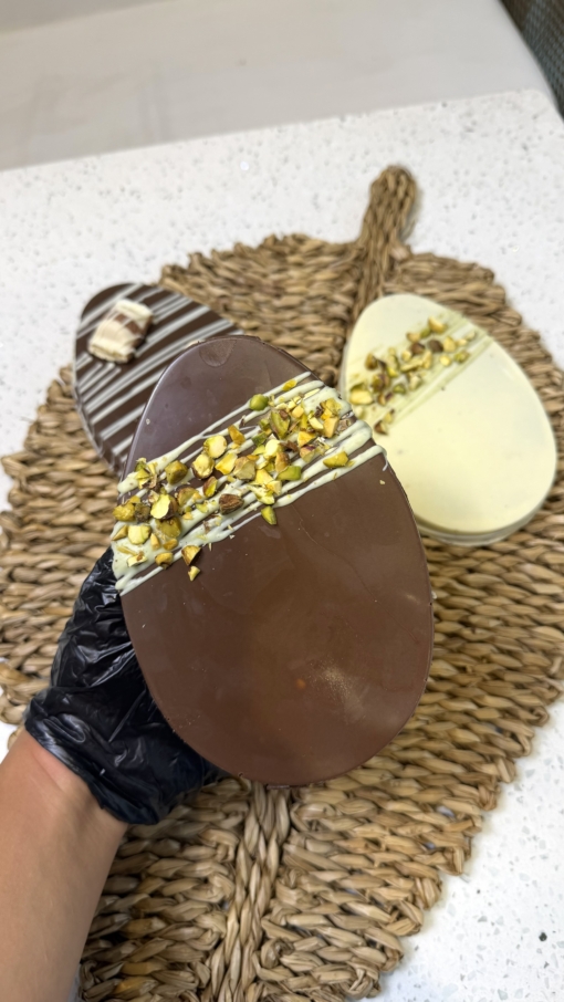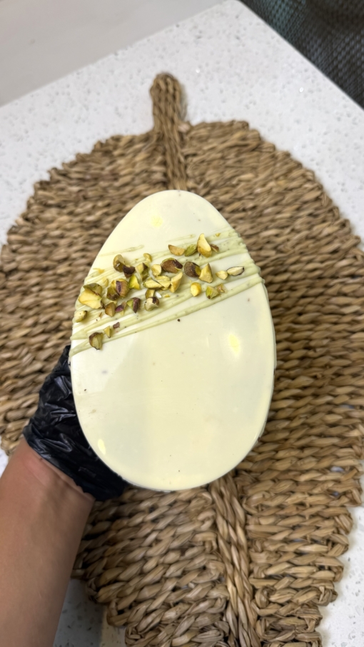 Huevo de chocolate con leche relleno de crema de pistachos