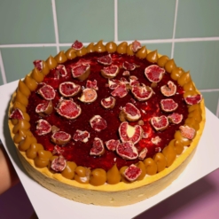 Bizcochuelo extra húmedo de chocolate relleno con crema bariloche (dulce de leche y chocolate).