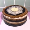 Bizcochuelo extra húmedo de chocolate relleno con crema bariloche (dulce de leche y chocolate).