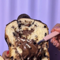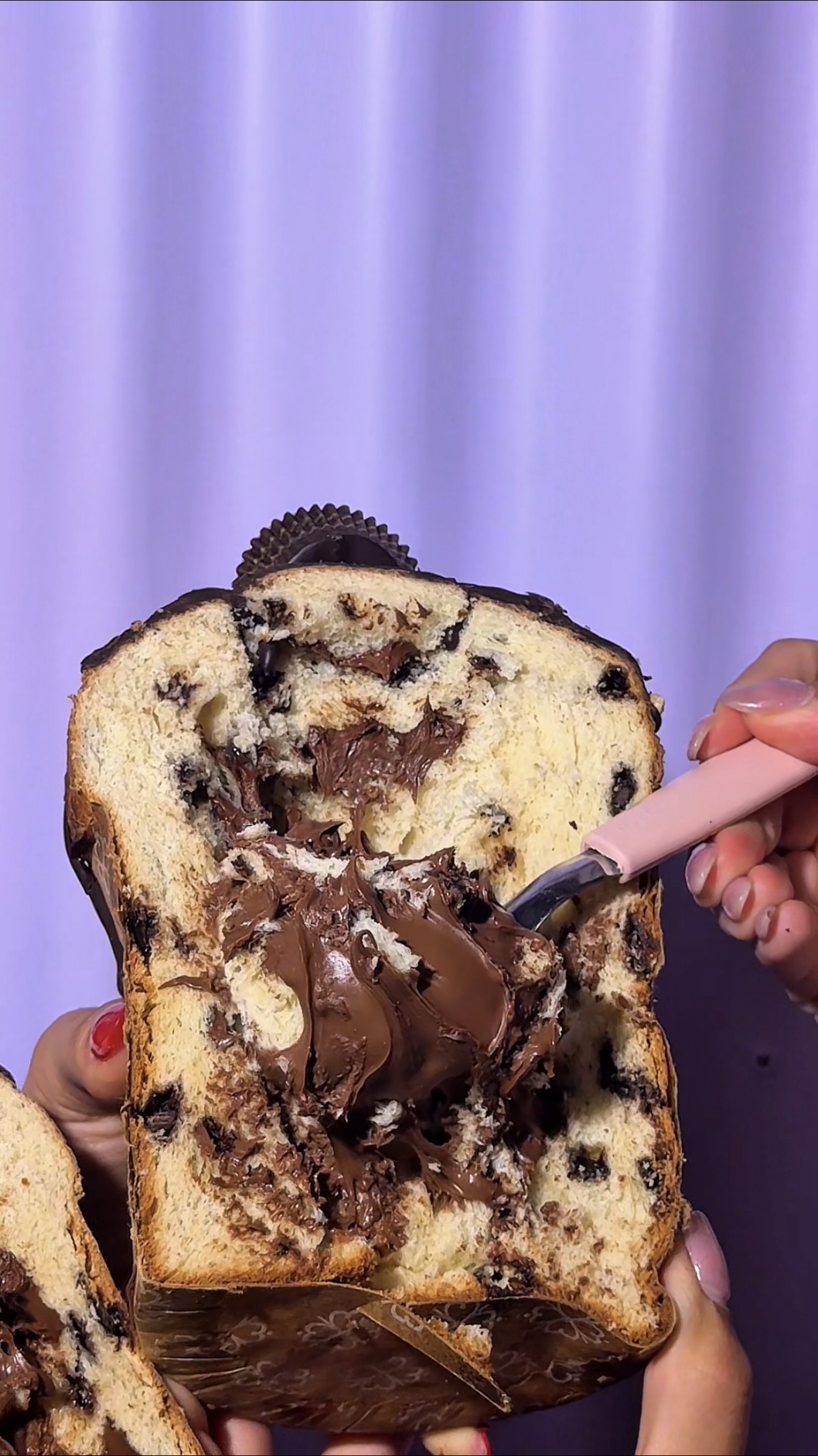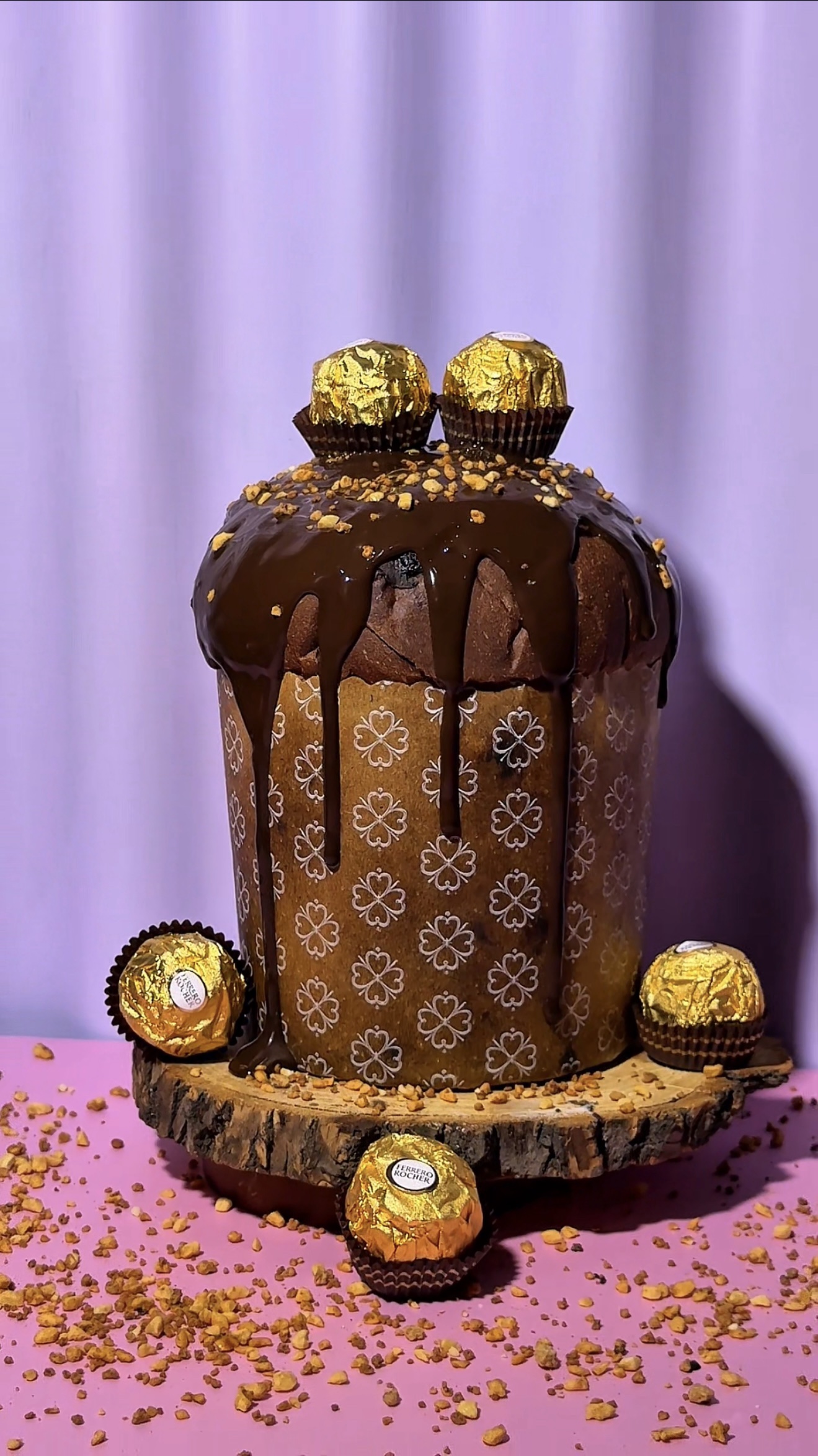Pan dulce con chips de chocolate relleno de nutella, decorado con ferreros. Pesa más de medio kilo